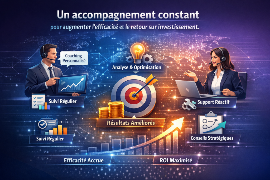 Bien plus qu’un outil : un copilote dédié qui vous guide, ajuste et propulse vos campagnes vers un ROI durable.